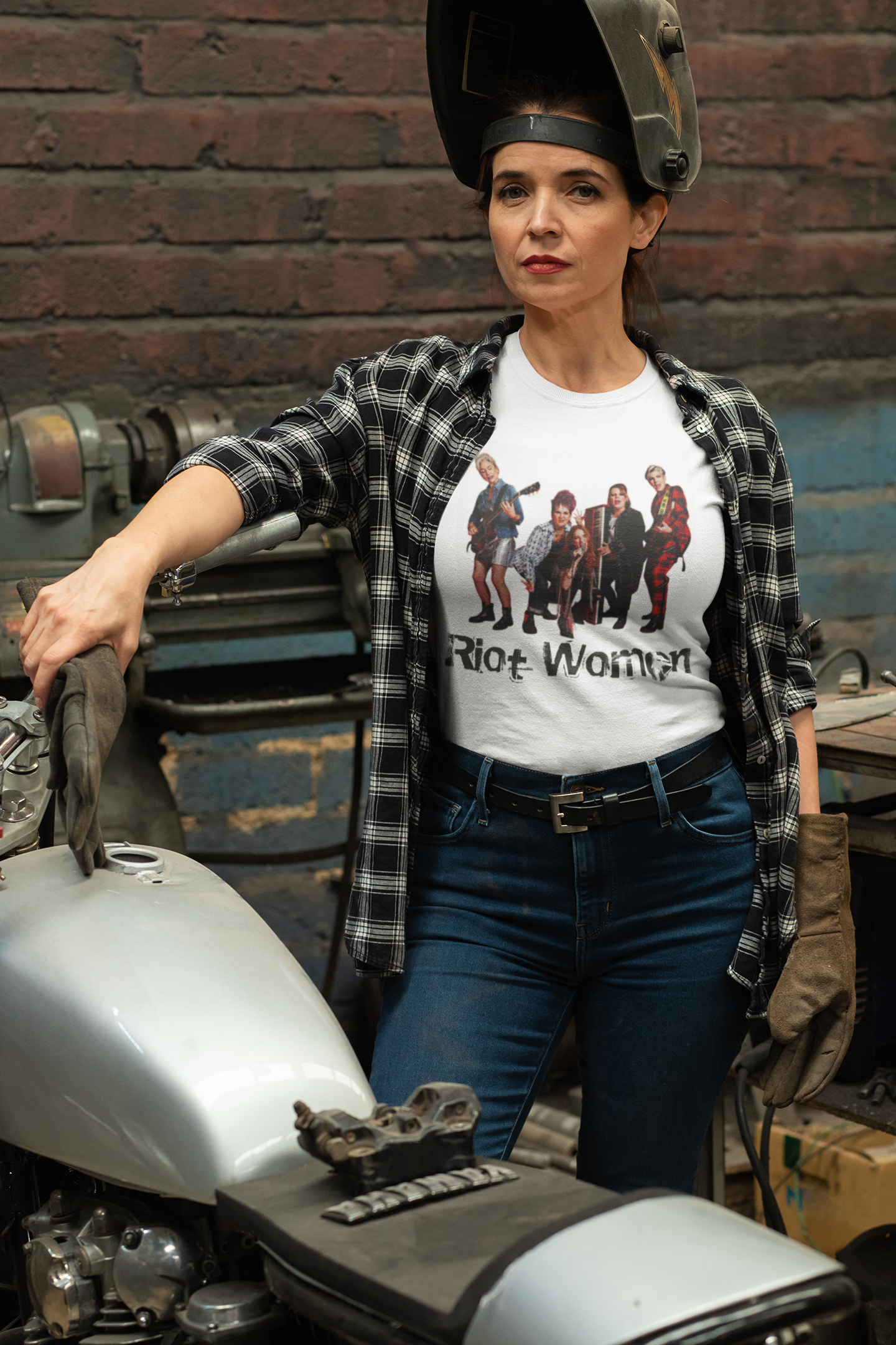 Unleash your inner rebel with our Ladies Punk Inspired Tee Shirt, showcasing a bold Riot Women image. This unique tee combines comfort and style, perfect for making a statement wherever you go. Crafted from soft, high-quality fabric, it offers a flattering fit and exceptional durability. Ideal for layering or wearing solo, it pairs flawlessly with your favorite jeans or leather jacket. Stand out from the crowd and celebrate your individuality with this empowering piece. Grab yours today and embrace the punk spirit!