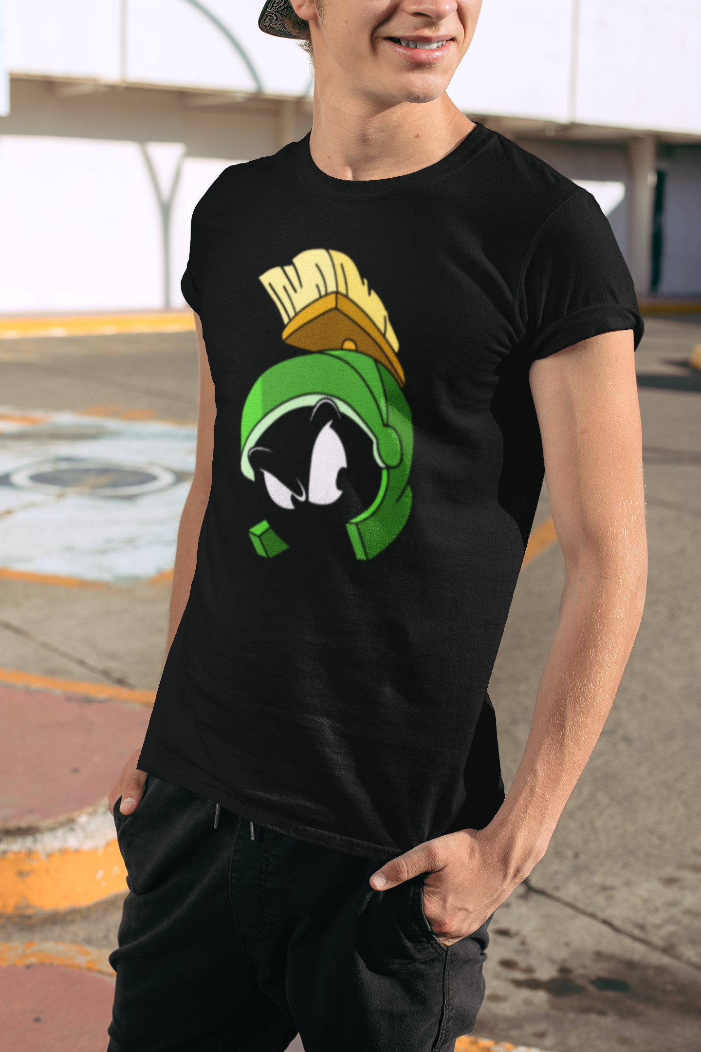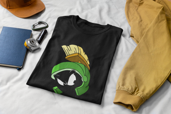 Celebrate your love for classic cartoons with our Marvin the Martian tee-shirt! Remember Marv from Looney Tunes? Well, here he is in all his glory, ready to add a touch of nostalgia to your wardrobe. This comfy tee is perfect for fans of all ages and makes a great gift for anyone who adores Marv's antics. Available exclusively in black, it’s easy to style for any occasion. Don't miss out on this must-have piece—grab your Marvin the Martian tee-shirt today!